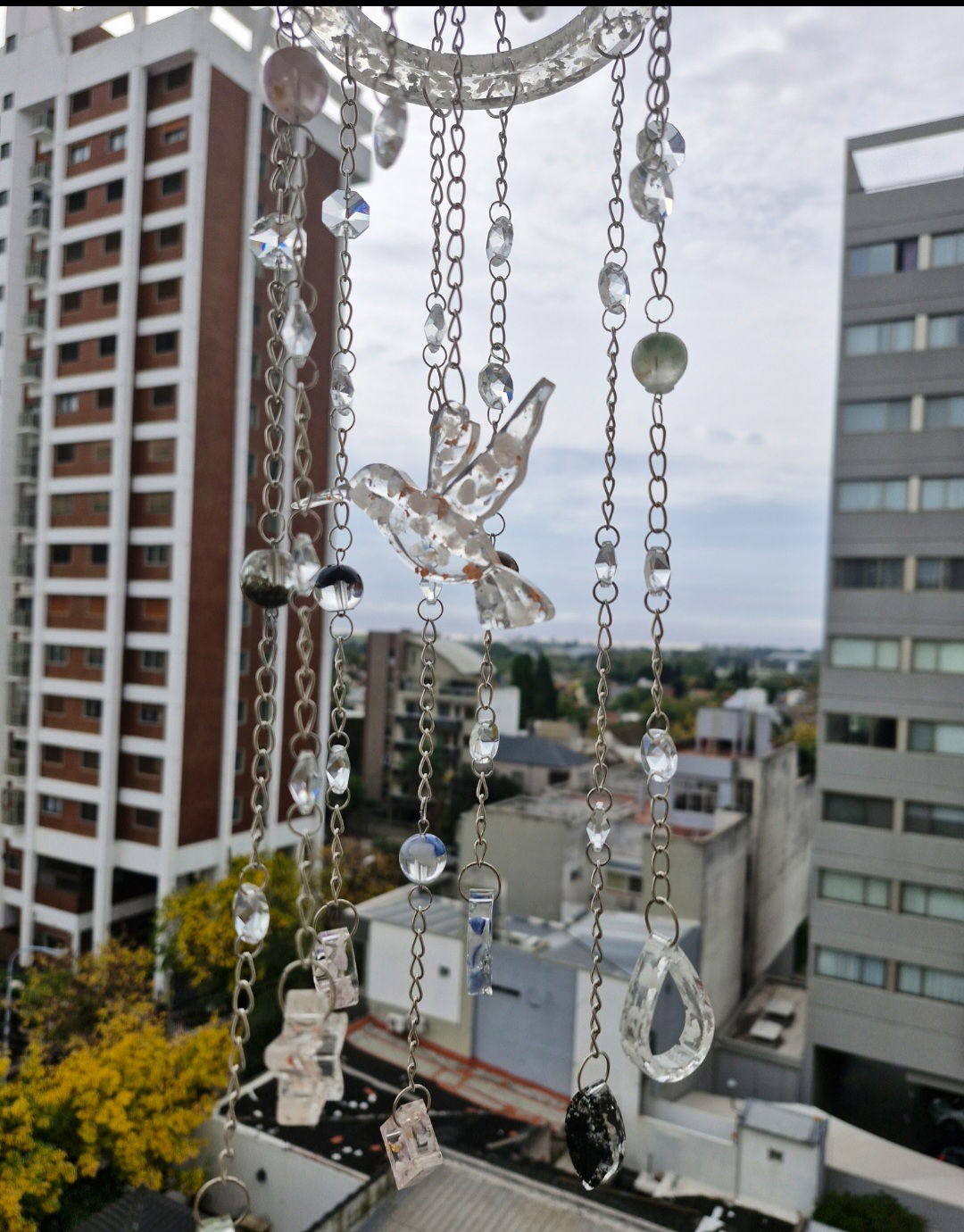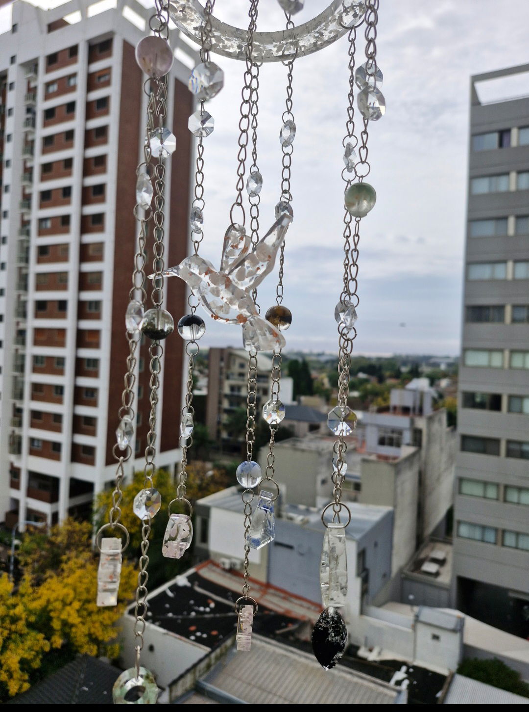 Cuarzo Rosa ( AMOR ). Cuarzo verde ( salud), Cuarzo Blanco ( protección) Cuarzo azul ( Serenidad ), TURMALINA ( MÁXIMA PROTECCIÓN), PIRITA ( ABUNDANCIA) AMATISTA ( TRANSMUTACIÓN EN LUZ). Además al colocarlo en una ventana los caireles de cristal multiplican energía arcoiris por Doquier.